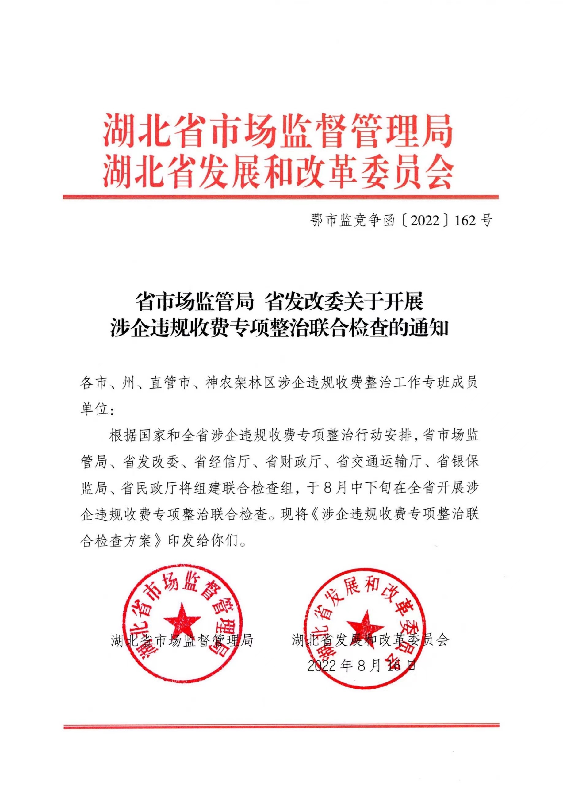 省市場監(jiān)管局省發(fā)改委關(guān)于開展涉企違規(guī)收費專項整治聯(lián)合檢查的通知